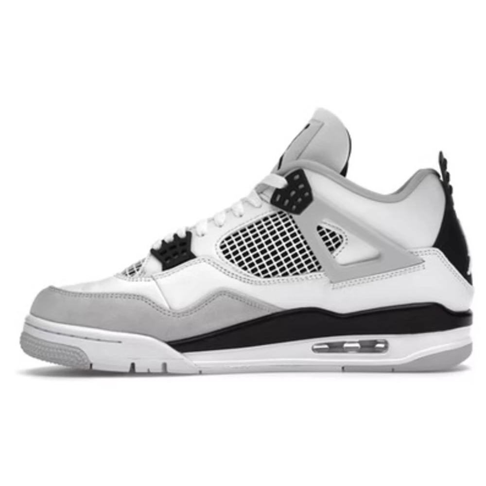 Denne vakre utgaven av Jordan 4 bruker et tonalt monokromatisk utseende for å forbedre den generelle designen til den elskede silhuetten. Paneler i hvitt, grått og svart utgjør overdelen, dekorert med skinn, semsket skinn og plastelementer. En svart og hvit Air-mellomsåle gir demping og komfort, mens den grå yttersålen sikrer slitestyrke og grep. Militærklar, men fungerer like godt for gatene.
