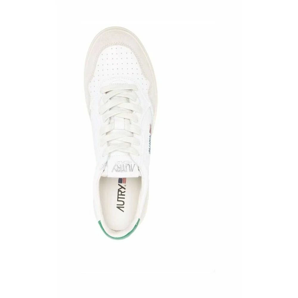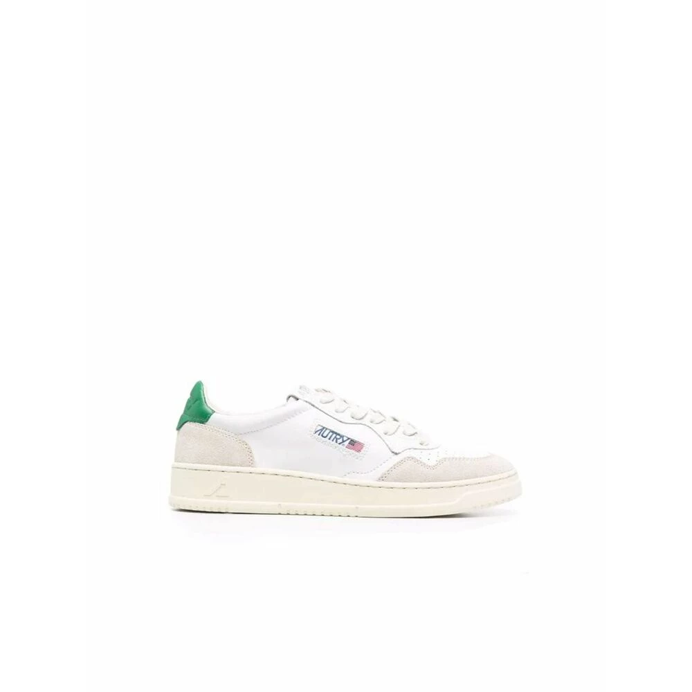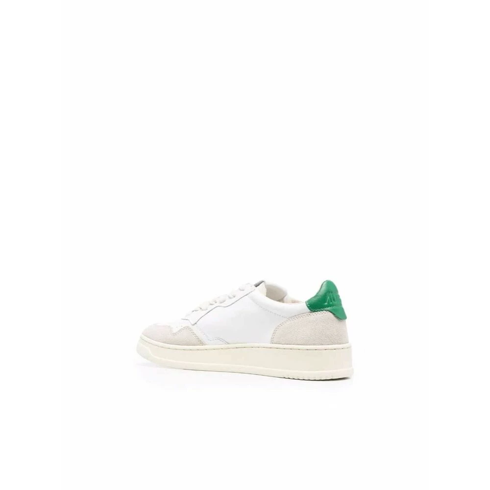 Lave skinnsneakers med semsket skinndetaljer og grønn logo på baksiden hvite og grønne brune kalver med logo på sidene perforerte detaljer
