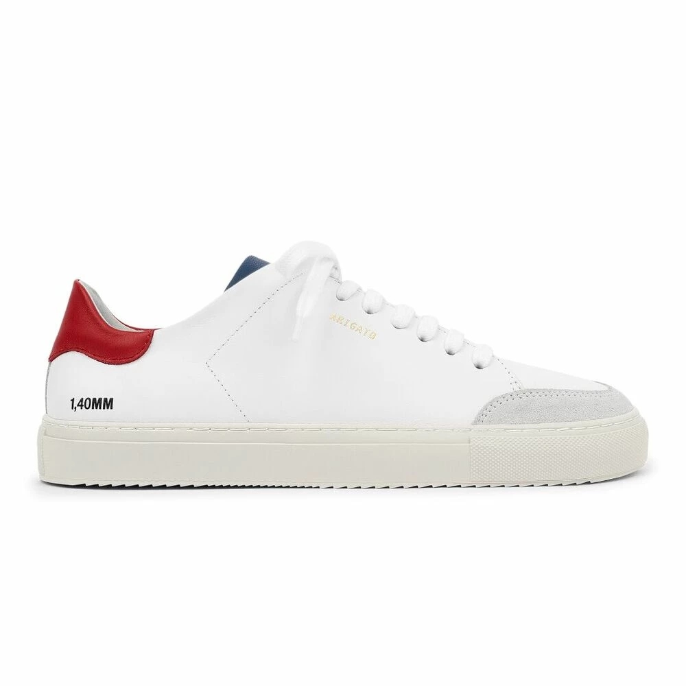 De håndlagde Clean 90 Triple Sneakersene er laget med en overdel i italiensk skinn fra et gullsertifisert garveri og fôr i helskinn. Gummisålen inneholder en blanding av resirkulert og virgin gummi for bærekraft og holdbarhet. Den hvite sneakeren har kontrastdetaljer i rødt og blått på pløsen og hælen.
