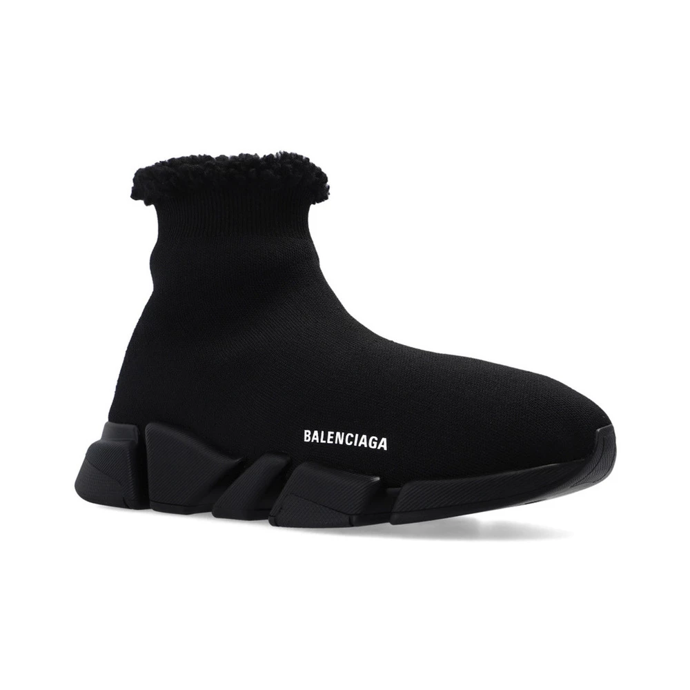 Svarte Balenciaga Speed 2.0 joggesko i teknisk 3D resirkulert strikk og fuskepels. Ultraartikulert støpt såle. Yttersåle med No Memory-teknologi. Ultralett design gir barfotfølelse. Kontrasterende logo trykt på siden av skoen. Preget logo på bunnen av sålen. 86 % av de øvre materialene er resirkulert polyester.