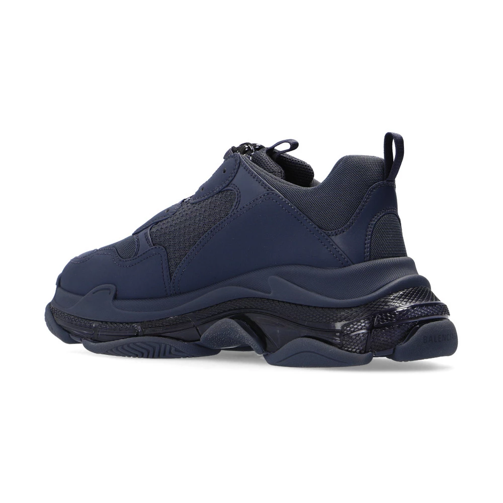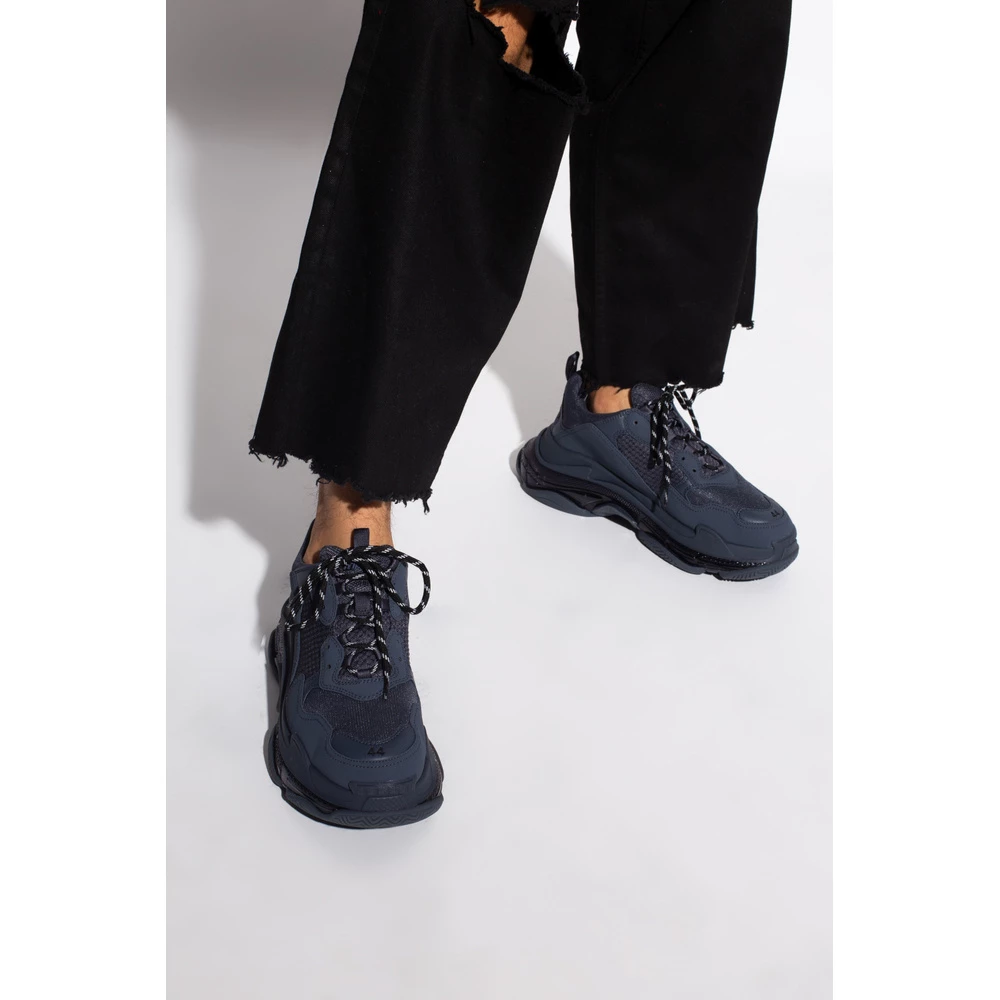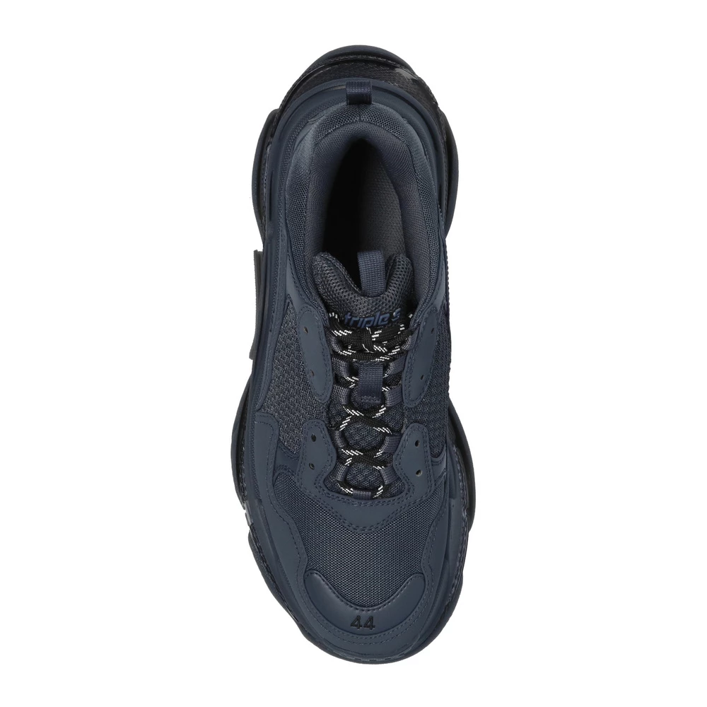 Navy Blue ‘Triple S’ joggesko fra Balenciaga. Denne blondermodellen er brodert med merkets logo i svart, og sitter på en marineblå gummisåle.