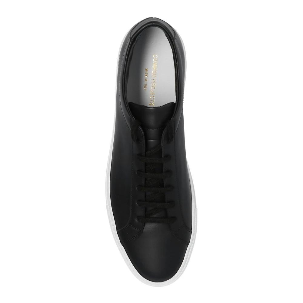 Svarte ‘Achilles Low’ joggesko fra vanlige prosjekter. Dette blonderparet er laget av lær, og er satt på en hvit gummisåle og viser frem signatur gulltonet grafisk trykk.