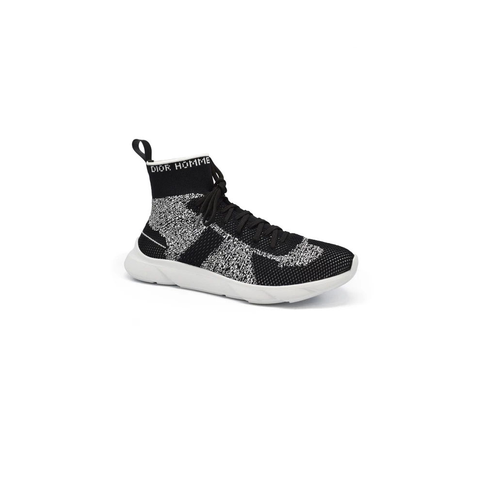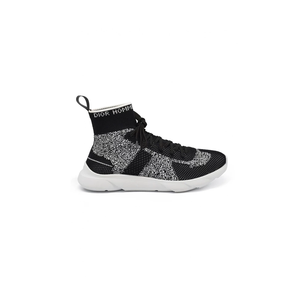 Svart teknisk strikke Dior sokker med svart laces.White gummi sole.Made i Italia.