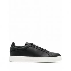 Emporio Armani Sneakers Black Logo-Print Lace-Up Sneakers fra Emporio Armani med svart/hvitt, logo-trykk på baksiden, frontfjæringen foran, rund tå, flat gummisåle og leggskinn.