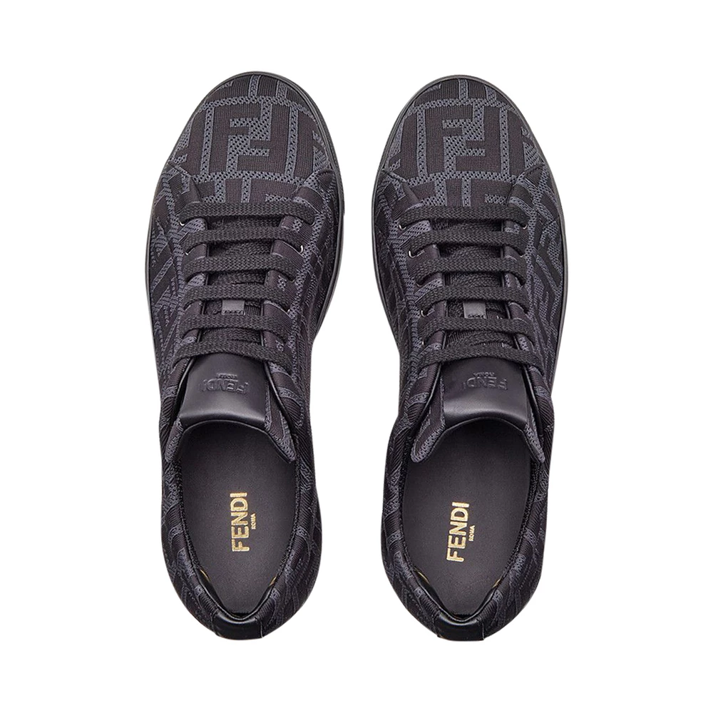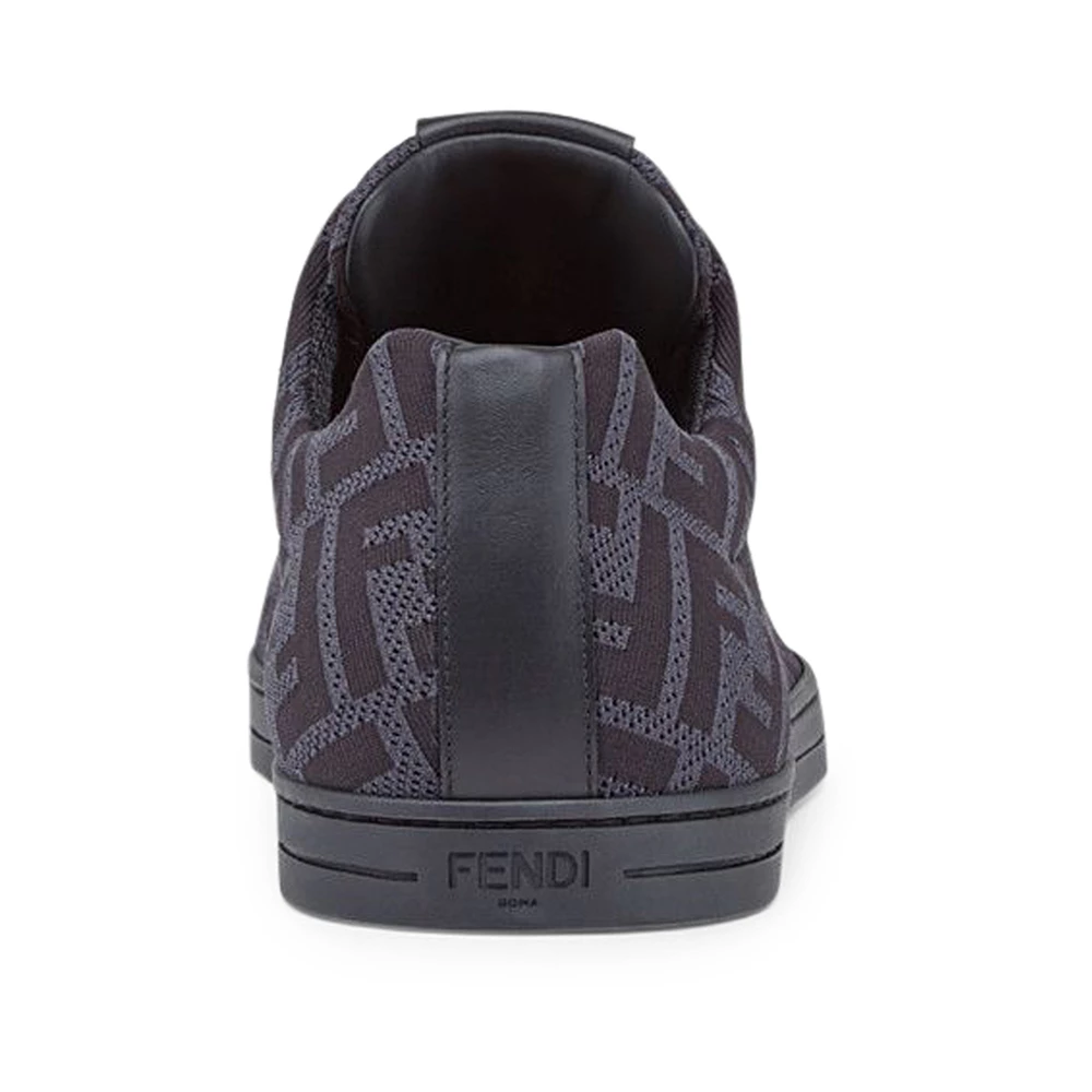 Mørkegrå og svarte lave sneakers i Fendi tech-stoff med mesh-overdel med FF-motiv. Gummi koppsåle. Hældetalj i skinn og logomerket lapp på pløsen.