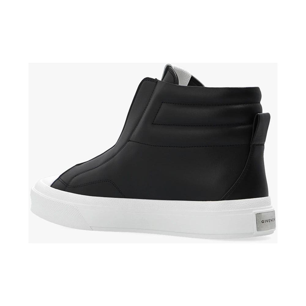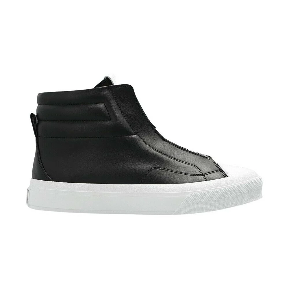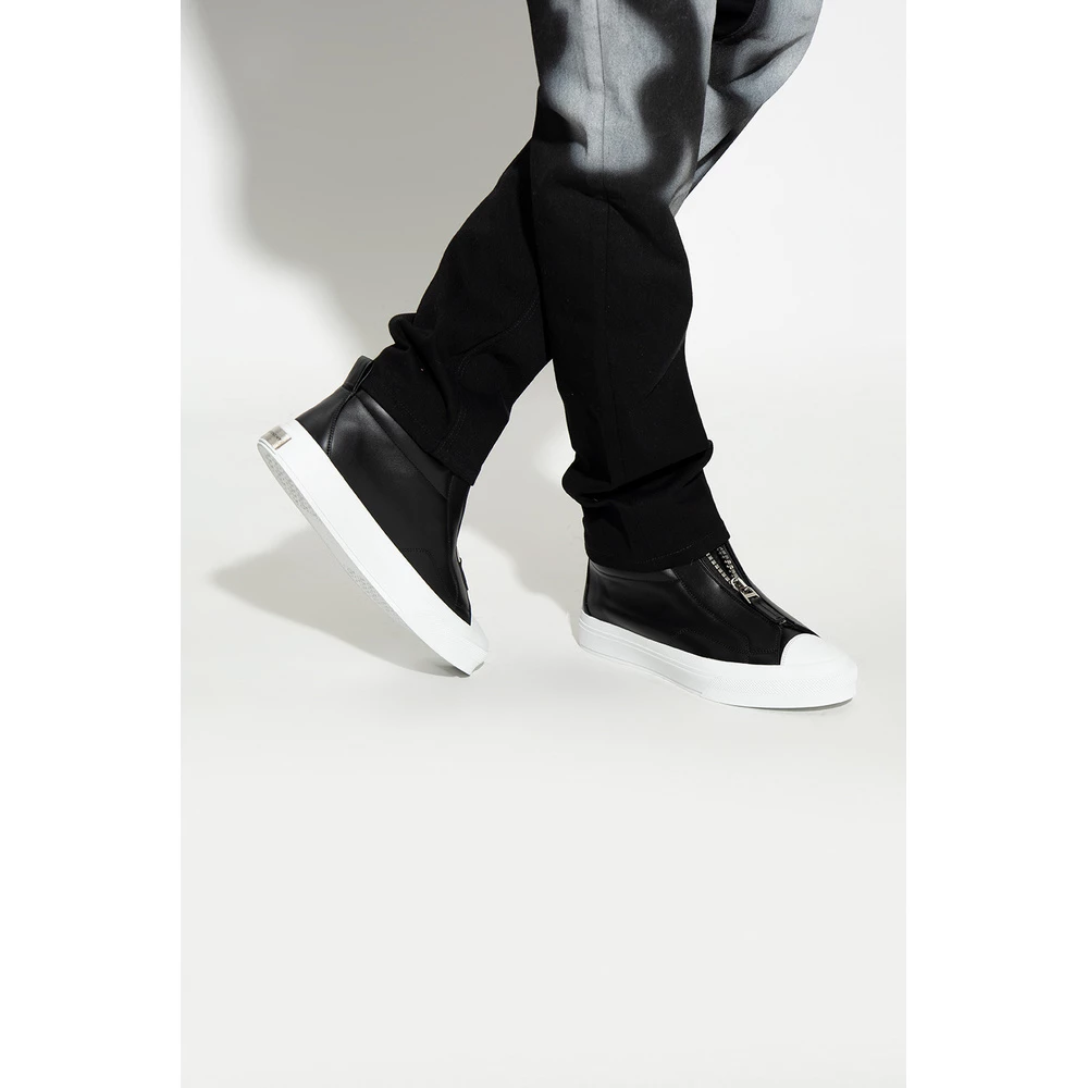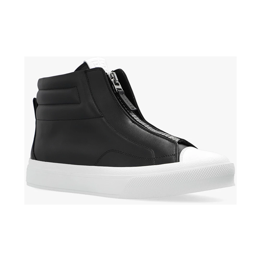 Svarte ‘by’ høye top joggesko fra Givenchy. Dette paret er laget av kalveskinn, og har et dekorativt glidelås med 4G-logo-motiv, hvitt skinnlapp med en preget 4G-logo og hvit gummisåle med et dekorativt metallinnsats og en logo i sølvfarget.