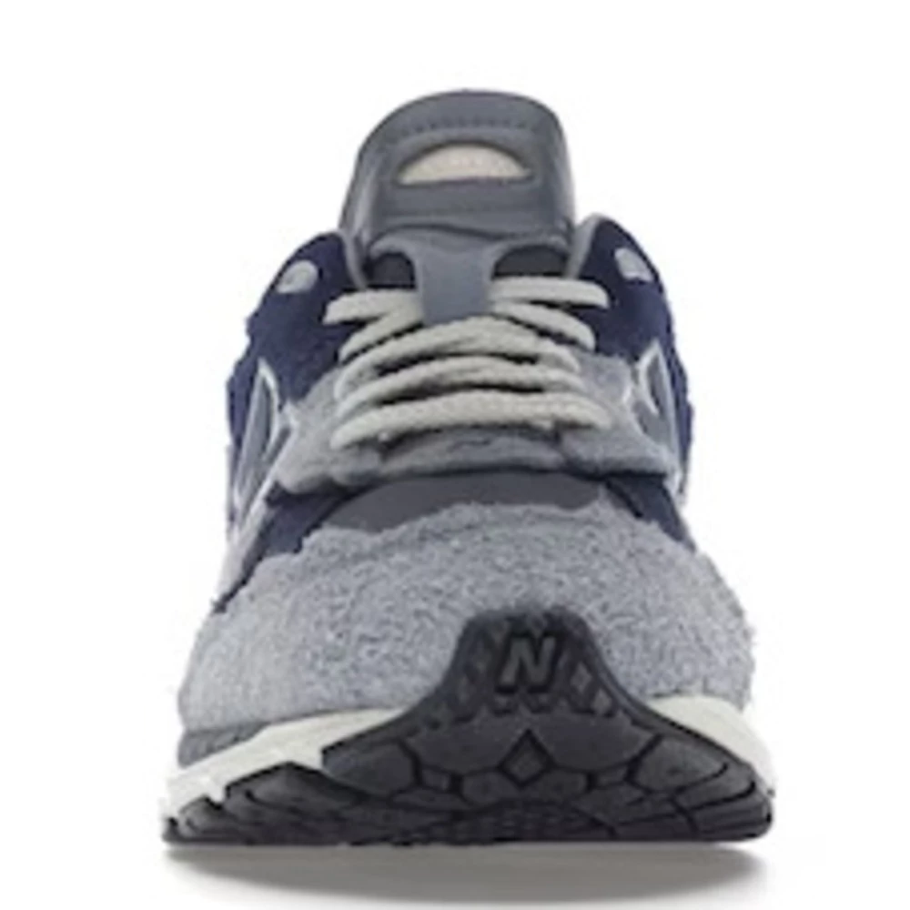 New Balance 2002R Protection Pack Light Arctic Grey Purple har en blandet overdel som kombinerer semsket skinn, glatt skinn og mesh. Joggeskoen har et dekonstruert utseende takket være innlegg på skjerm, maljer og overdel. Siden N i lys lilla gir definisjon, det samme gjør kremblondene.