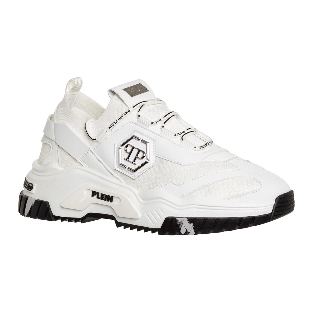 Joggesko Philipp Plein Men Modello Predator SABS-USC0124-PTE003N_01 Hvit. Bruksområder: Logo Detalj Lukking: Lisser Mønster: Solidfarge såle: Flyttbar innersåle, gummisålehøyde: 1,77 tommers tå: rund slepelinje Type: joggesko