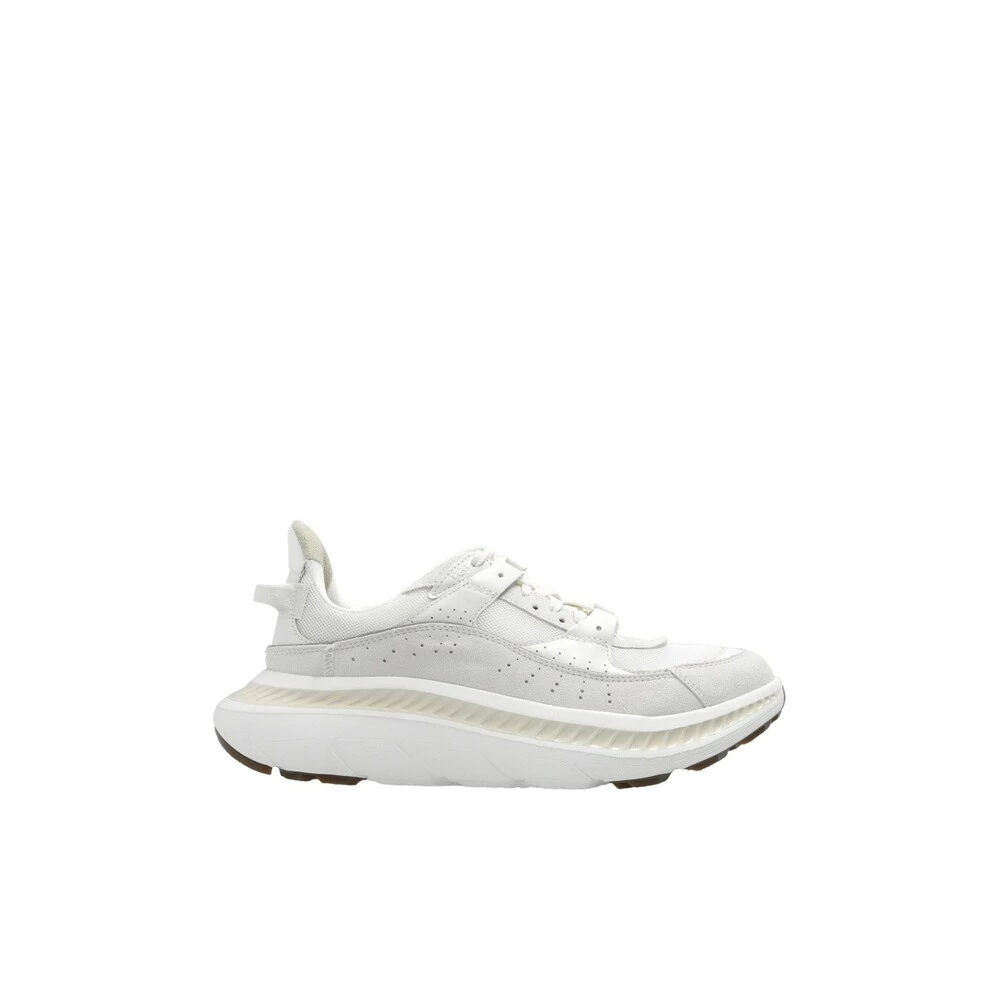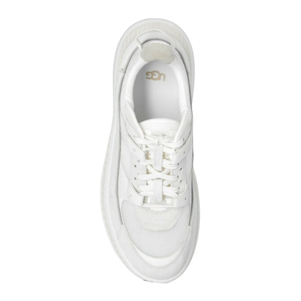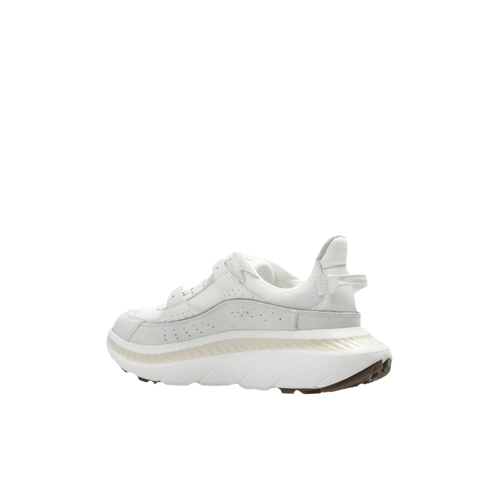Krem og hvit ‘CA805 V2’ joggesko fra Ugg. Dette paret har nett og semsket trims og hviler på en gummisåle i hvitt og brunt.