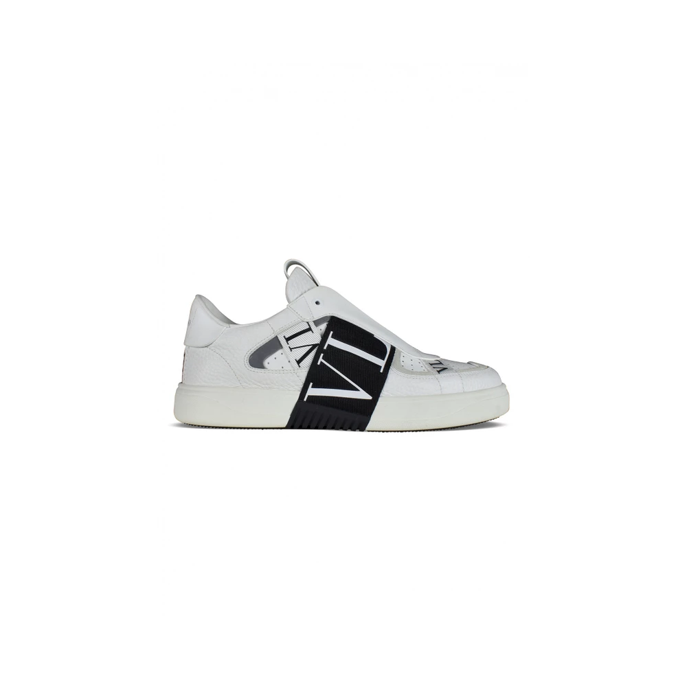 Valentino VL7N slip-on joggesko i hvitt skinn. Syv bånd med VLTN -logo i svart og hvitt. Hvit skinndisk med Valentino -logo. Valentino logo tunge.Rubber Sole. Laget i Italia.