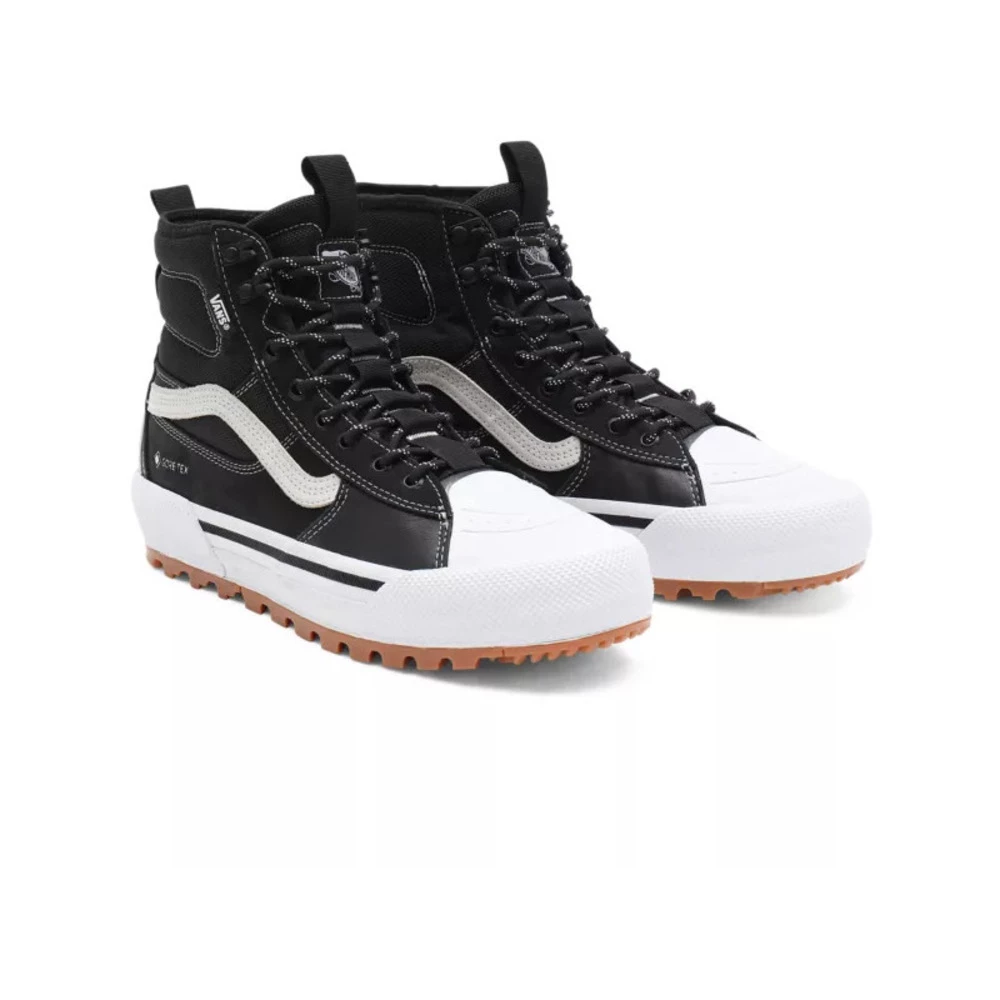 Vans MTE er biproduktet av en utendørs livsstil, fordi vi vet at når du forfølger lidenskapene dine, kommer ikke godt vær alltid med deg. Regn, sludd, snø, gjørme, vind – ingenting vil komme mellom deg og ditt neste eventyr. Vi liker faktisk å tro at alle disse elementene gir litt smak til opplevelsen. Derfor opprettet vi MTE i utgangspunktet. Den nye SK8-Hi Gore-Tex MTE-3-sko er designet spesielt for dårlig vær med vår mest avanserte all-Weather-teknologi, og samler mer enn 25 år med Vans Snowboard-bagasjerom og teknologi i en tidløs design. Og pålitelig. MTE-3-funksjonsserien inkluderer MTE-3-yttersåle laget med All-TRAC ™, en unik MTE-gummiforbindelse med allvær som gir betydelig forbedret grep med en raffinert tåboks og pigget yttersåle. Den vanntette membranen i Gore-Tex er designet for å holde deg tørr; En kraftig 3M Thinsulate ™ -isolering for å regulere kulden termisk vil holde deg varm, og dobbeltlaget støpte sockliner sammen med den utmerkede Ortholite® øvre innersåle er designet for å holde deg komfortabel. I tillegg tilfører den holdbare lær- og tekstiloverdelen med en vannavvisende finish til den ikoniske varebilen estetisk uovertruffen komfort i kaldt vær. Enten du finner deg selv som krysser snødekte topper eller vender mot en dag med kraftig regn, kan du sette deg ut med trygghet og vite at alle sømmer i utstyret ditt er bevisst for å gi maksimal allsidighet. På slutten av dagen vet vi at det ikke handler om destinasjonen, men om historiene du lager gjennom hele reisen. • Grep: Yttersålens nye All-Trac ™ gummiforbindelse med en kraftig lug-design gir et fleksibelt og effektivt grep i alt vær som bidrar betydelig til et samlet grep på alle typer overflater. Sålene og høyere forsterkning i tåboksen gir enda mer grep og beskyttelse. • Termoregulering: 3M Thinsulate ™ isolasjon er varm, lett, kraftig og tynn. Thinsulate er ekstremt fine mikrofiber hjelper til med å felle luft og forhindre varmetap, noe som gjør isolasjonen utrolig effektiv, samtidig som den er indre fuktighet til å vekke bort. • Fuktighetskontroll: Designet med en klassisk indre foring som gjør at indre fuktighet kan elimineres mens du holder snø og regn i sjakk, Gore-Texs løfte om å holde deg tørr (garantert å holde deg tørr ™) i enhver tilstand klima. • Komfort og ytelse: En dobbeltlag Ultracush ™ støpte Eva Sockliner og utmerket Ortholite® øvre sockliner gir ekstra komfort og letthet, samtidig som du holder interiøret i sko-tørrere og i bedre stand.