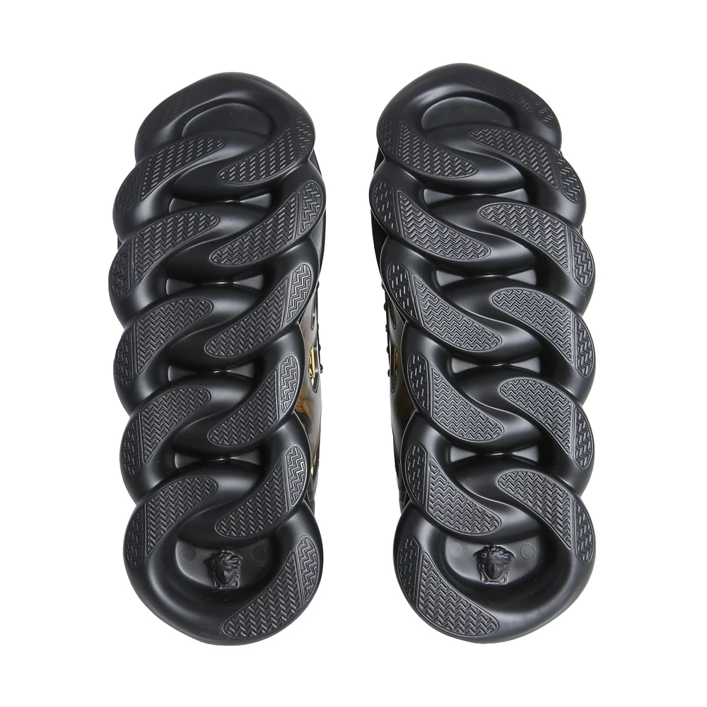 Overstore gummibunn med ikonisk gresk: 4 cm, frontlukking med bearbeidet rørformede snøringer, gummi og skinninnsats på det øvre, medusahodet preget på hælen, polstret tunge, laget i Italia.Denne beskrivelsen er automatisk oversatt.