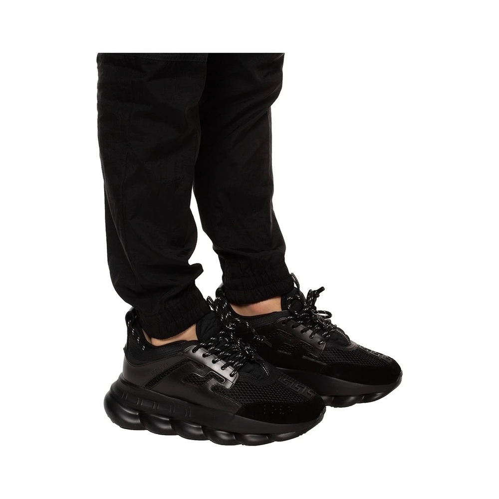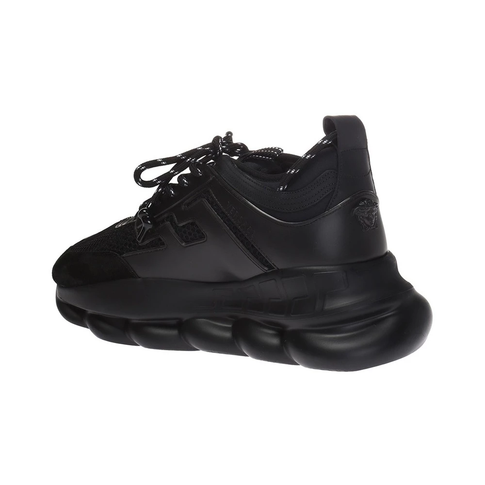 ‘The Chain Reaction’ sorte joggesko med blonder fra Versace. Gummi Chain Reaction logo på øvre tungen. Mesh akcenter på bodice. Braille love lette på forsiden og dekorative logo med medusa hodet på hælen. Oversized såle.
