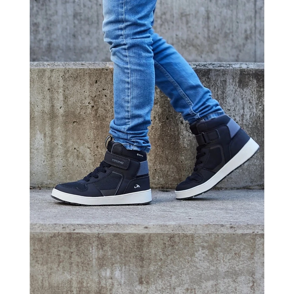 Jack Mid GTX Warm har et uformelt utseende og god komfort til kalde dager på skolen eller i byen. Jack Mid GTX Warm er laget av slitesterke materialer med reflekterende detaljer og vanntett Gore-Tex-beskyttelse. Fuskepelsfôret gir ekstra varme og isolasjon på kalde dager. En jr.-lest gir god komfort under enhver aktivitet. Hurtigsnører, borrelåsstropper og yttersåler med godt grep gjør det enkelt for barn å ta på og stramme skoene når de er på farten.